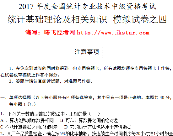 离2017年中级统计师考试有一个多月的时间了,不知大家复习如何?我们的模拟题已经快发布完了。各位学员请从下载专区中下载打印,自己先做再对答案,再听讲解。